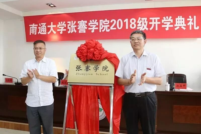 张謇曾孙、省人大常委张慎欣与校党委书记浦玉忠为张謇学院揭牌