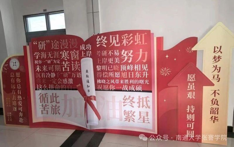 在考研进入最后倒计时的关键节点,学院特意设立的“考研祝福墙”成为传递力量的纽带。这些真挚的文字不仅是对自身的鞭策,更是同学间的相互鼓劲,让祝福墙成为展示梦想、传递温暖的精神阵地,彰显张謇学子对理想的执着与对未来的憧憬。