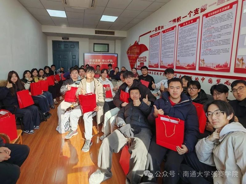 为助力考研学子坚定冲刺信念、舒缓备考压力,12月4日上午,张謇学院暖心举办2026届考研慰问交流会。学院领导老师与2026届考研学子齐聚一堂,在冬日的寒风中搭建起温情满满的“加油站”。张謇学院直属党支部书记、院长朱昱,教务处副处长、张謇学院副院长杨伟,张謇学院直属党支部副书记、副院长周煜等参加活动。
