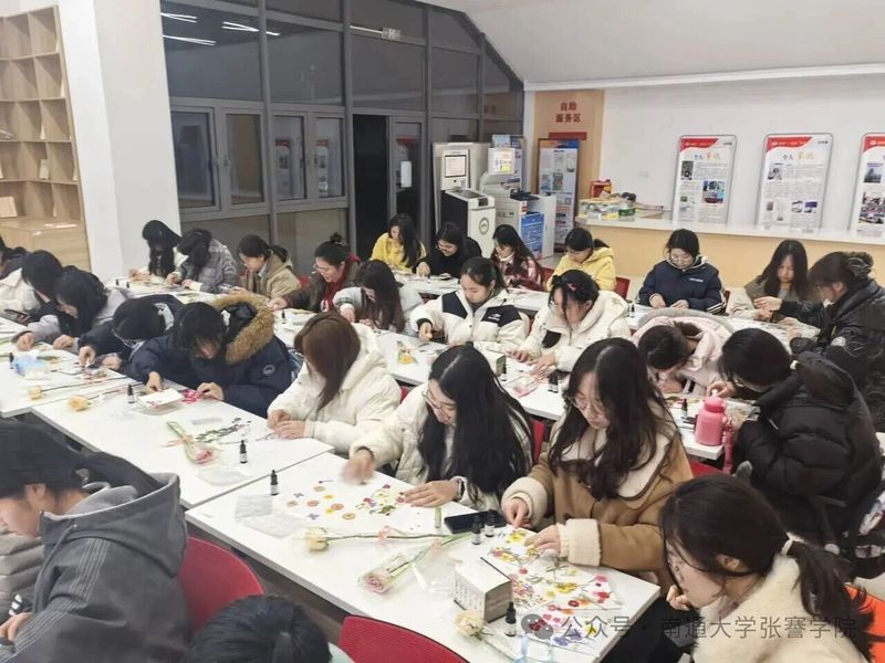 手作传情,芳韵留痕。活动尾声,温情满满的手工创作正式开启。同学们有序领取干花、相框、精油等材料,充分发挥自己的心思与创意,将干花错落搭配,滴上心仪的精油,亲手打造专属自己的手作纪念。指尖流转间,创意与温情交融,每一件作品都承载着女生们的巧思与期许,既实现了视觉与嗅觉的双重治愈,也为这场放松之旅留下了一份独一无二的美好回忆。