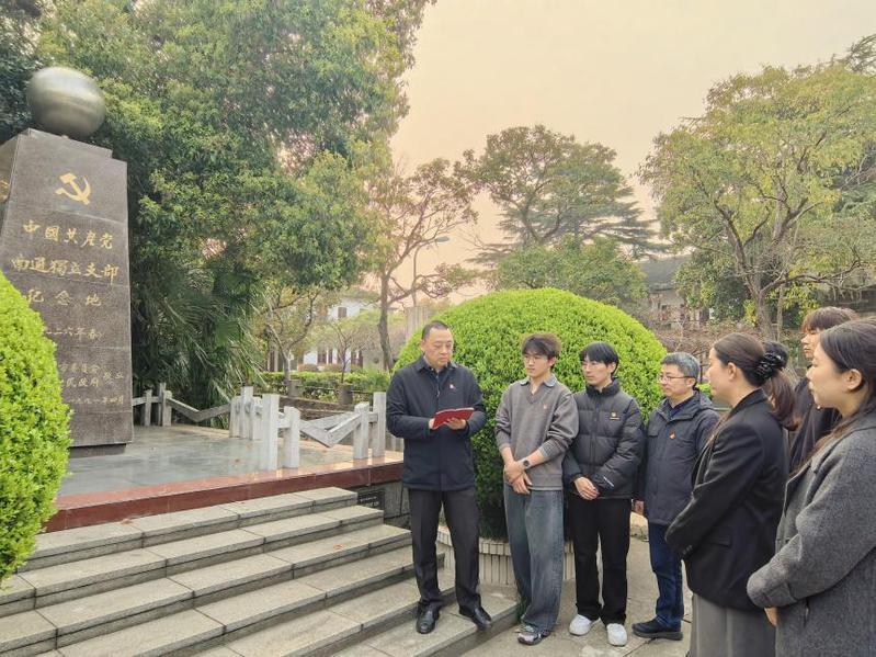 在中国共产党南通独立支部纪念碑下,学院直属党支部书记朱昱带领全体党员重温党章,围绕党章中党的性质、宗旨、奋斗目标,以及党员的权利与义务、党的组织制度等核心内容逐章解读,重点阐释党章中关于“坚持全心全意为人民服务”的根本宗旨、“坚守初心使命”的时代要求,深入剖析党章对党员干部树立正确政绩观、践行立德树人使命的具体指引,引导全体党员深刻领会党章内涵,自觉对照党章规范言行,把党章要求融入教育教学、履职尽责全过程,切实将党章学习成果转化为坚守初心、勇担使命的思想自觉和行动自觉。