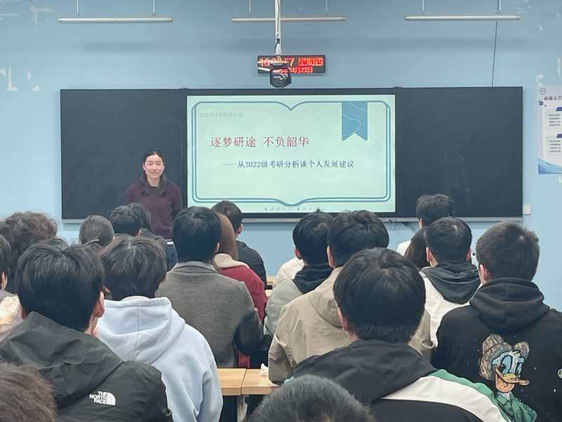 周煜结合详实数据,分析了学院2022级学生升学情况与2026年考研整体形势,引导学生理性评估自身现状、科学精准定位,合理规划个人发展与职业方向。她引导同学们回归初心,深入思考“为什么读研”,强调坚定明确的奋斗目标,是漫长备考路上的强大内驱力。她表示,学院将持续为考研学生提供全过程、多维度保障支持,包括专业复习指导、个性化精准帮扶、常态化心理疏导等举措,全力护航学子升学之路。