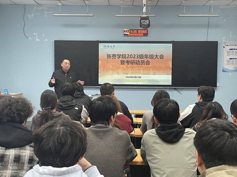 4月23日下午,张謇学院召开2023级年级大会暨考研动员会。学院直属党支部书记、院长朱昱,直属党支部副书记、副院长周煜,综合办公室(教学管理办公室)主任黄玉梅,学工办主任兼团委书记顾飘出席会议。